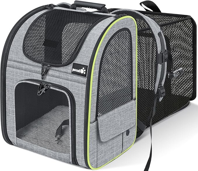 Pecute Cat Carrier Backpacks, Expandable Cat Backpack with Breathable Mesh, Pet Carrier Backpack for Cats Small Dogs Puppies Up to 17 Lbs, Dog Carrier Backpack Great for Travel Hiking Camping Outdoor